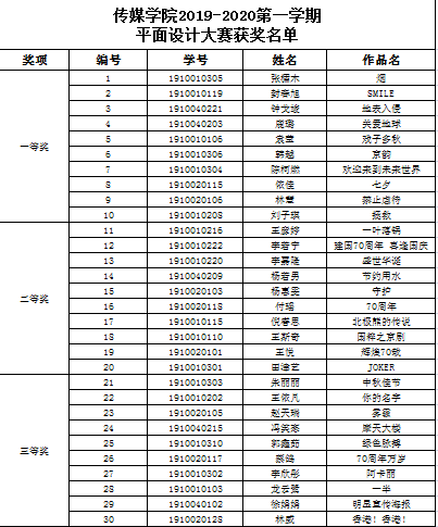 2019年12月4日下午,我院在3507实验室举行了19级学生平面设计大赛的决赛,此次大赛由传媒万博体育官网专职教师王双老师、关茹卉老师、陈思宇老师、王越老师和裴明明老师共同担任评委。 本次比赛选出一等奖10名,二等奖10名,三等奖10名。...
