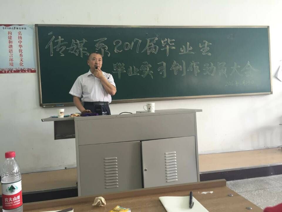6月23日下午,我系在3420教室召开2017届毕业实习创作动员大会。出席本次会议的有传媒系主任高峰、教学主任姜洪德、辅导员张明亮、专职教师马兢以及传媒系2017届全体学生。本次会议由姜洪德老师主持。 会议伊始,姜洪德老师宣读了《...