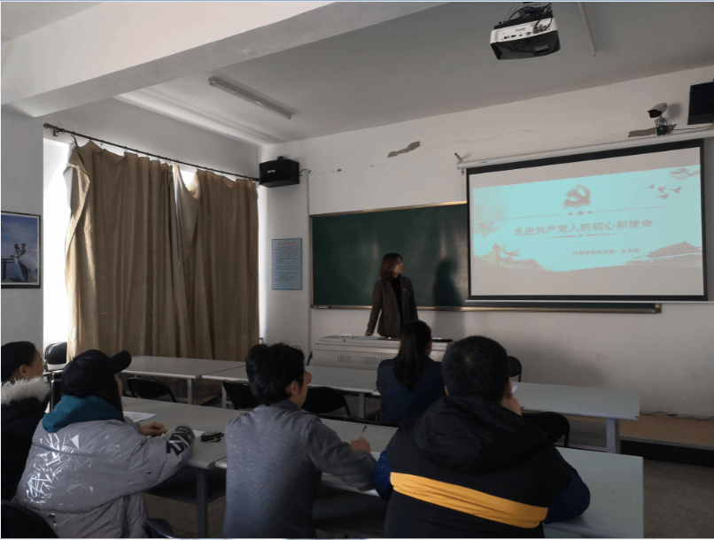 党课伊始,师生联合党支部书记王天明老师表示作为一名党员,我们要更好地践行“不忘初心牢记使命”主题教育。今天,我们将一起回顾中国共产党的发展历程以及推陈出新,真正践行中国共产党的初心和使命!