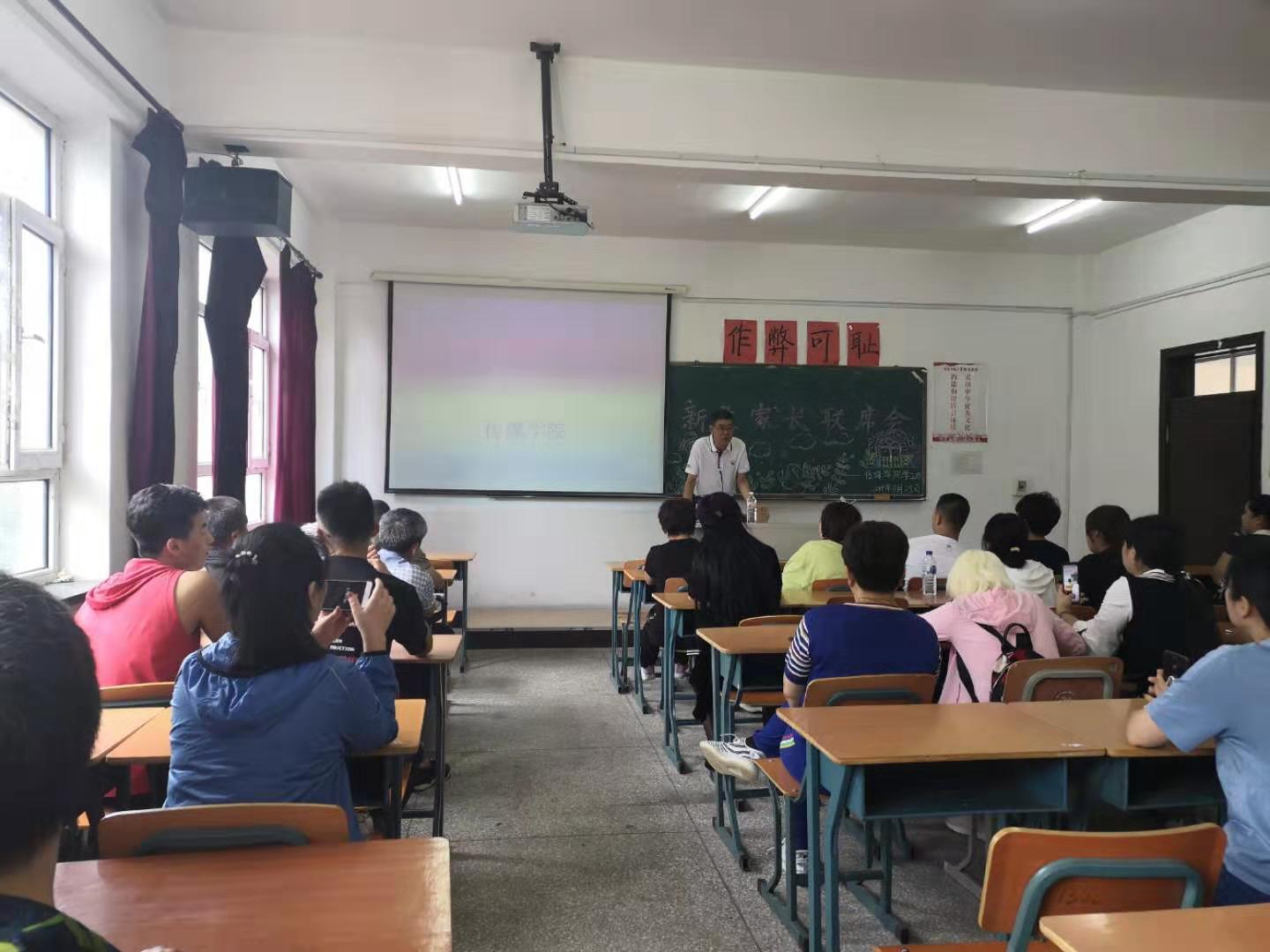王天明导员先是介绍了学工办的主要功能:主张德育,让同学们树立积极向上的世界观、人生观。然后讲了学生挂科和缺课处理方法,挂科九门及以上的同学将取消学士学位证,只拿毕业证;一门缺课三分之一将无法参加期末考试,直接按挂科处理。(旷课和请假都算缺课)