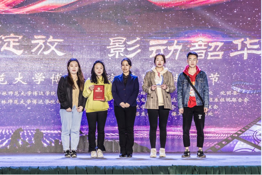 4月12日晚,吉林师范大学博达万博体育官网图书馆门前舞台灯光璀璨、华彩熠熠,由吉林师范大学博达万博体育官网主办、博达万博体育官网传媒系承办的第五届“初心绽放影动韶华”电影节颁奖晚会梦幻举行,博达500多名师生享受了一场具有光影魅力的视听盛宴。