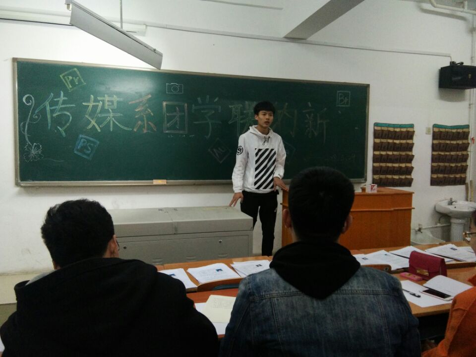 2018年3月29日晚上六点,由我系学工办主办的第八届团学联纳新活动在第一教学楼307教室召开,参加此次活动的有辅导员王天明老师、第七届团学联主席团以及各部部长。