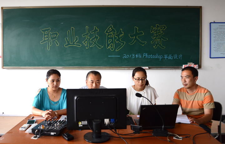 我系于2014年6月23日举办了2013级平面设计大赛,此次大赛由传媒系副主任姜洪德老师,任课教师张秋月老师以及专职教师任宏良老师和马兢老师共同担任评委。参赛作品共计87幅。