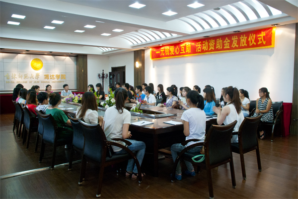 滴水聚爱河,点点汇真情。2013年7月3日16时,我院在二教四楼会议室举行了第三届“一元钱爱心互助活动”资助金发放仪式。副院长丛军、院团委王喜磊老师出席了本次仪式。