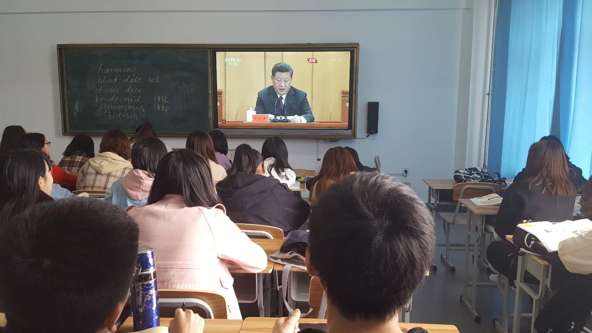 在纪念五四运动100周年大会上,习近平总书记高度评价了五四运动历史意义,并深情寄语当代青年:“第一,新时代中国青年要树立远大理想;第二,新时代中国青年要热爱伟大祖国;第三,新时代中国青年要担当时代责任;第四,新时代中国青年要勇于砥砺奋斗;第五,新时代中国青年要练就过硬本领;第六,新时代中国青年要锤炼品德修为。”观看直播的同学们备受鼓舞。教师们通过自学习近平总书记讲话,感受到了自己承担的“培养造就成德智体美劳全面发展的社会主义建设者和接班人”的重大责任,同时要努力去“做青年朋友的知心人,做青年工作的热心人和做青年群众的引路人” 。