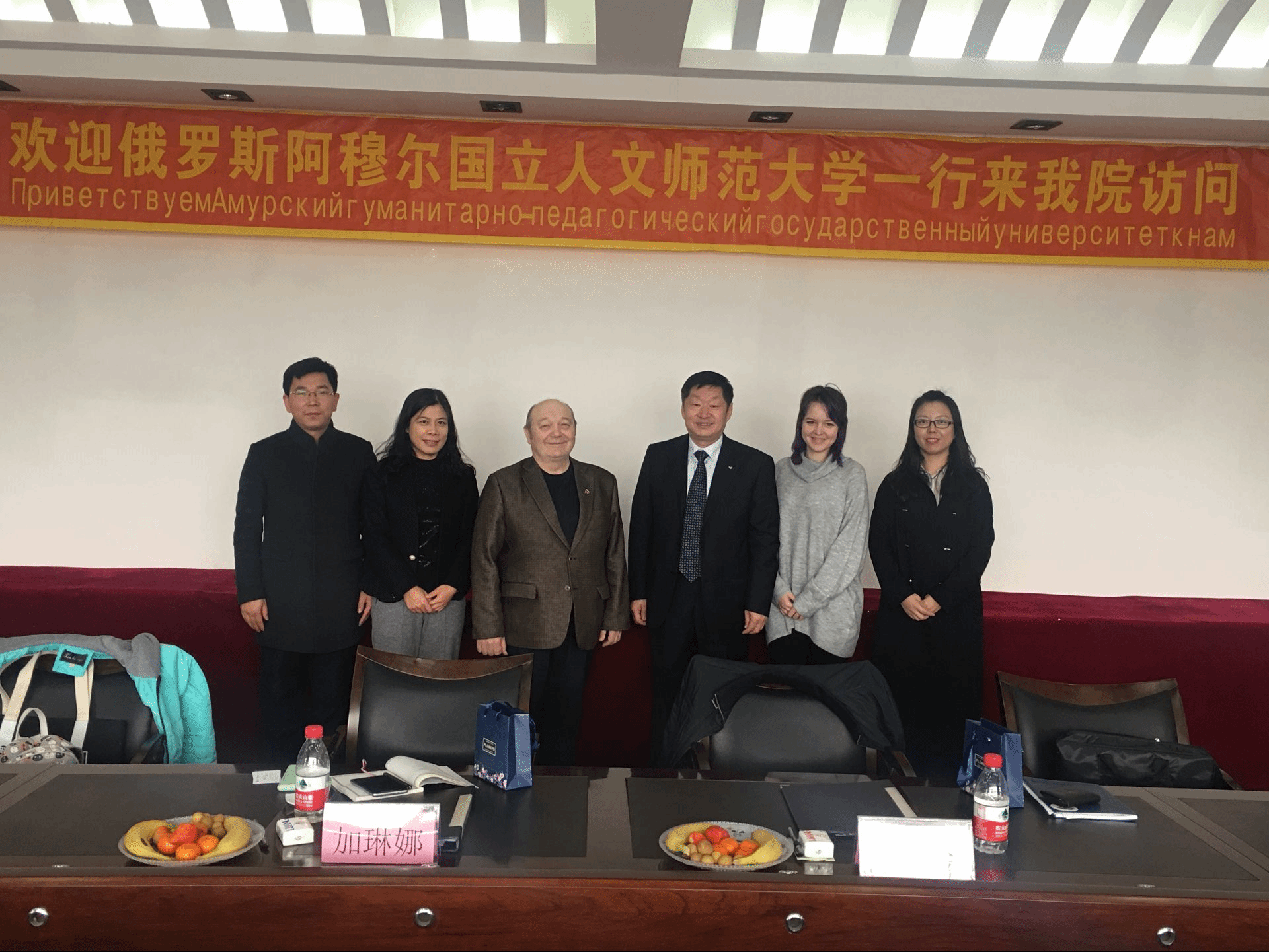 4月3日,俄罗斯阿穆尔国立人文师范大学科什金副校长和该校国际合作与交流处加琳娜老师来我院访问并在二教四楼会议室举行会议。
