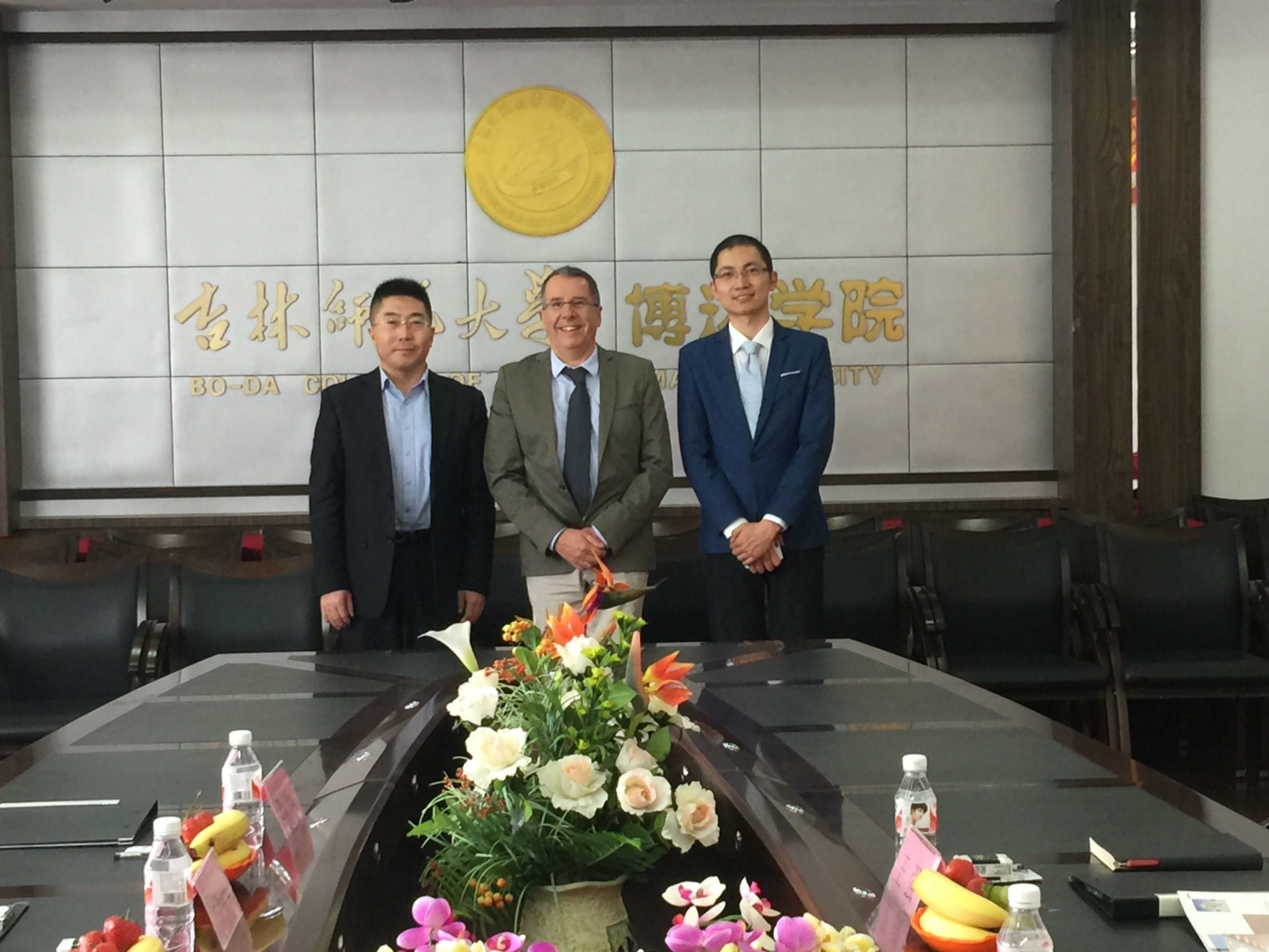 5月 6日,法国普瓦捷大学代表Christian Gaujac院长及法国驻沈阳领事馆推广与留学指导部负责人王强先生来我院访问。外事处处长崔建立及外事处全体成员出席会议并陪同来访客人参观校园。会议中,崔建立处长对我院办学情况进行简要介绍,Christian Gaujac院长对博达万博体育官网作为一所年轻大学取得的成绩表示赞赏。双方就法语专业学生赴法开展短期语言培训、本科“2+2”、硕士“4+1+1”或“4+1+2”、教师和学生互换等教育合作项目达成共识。