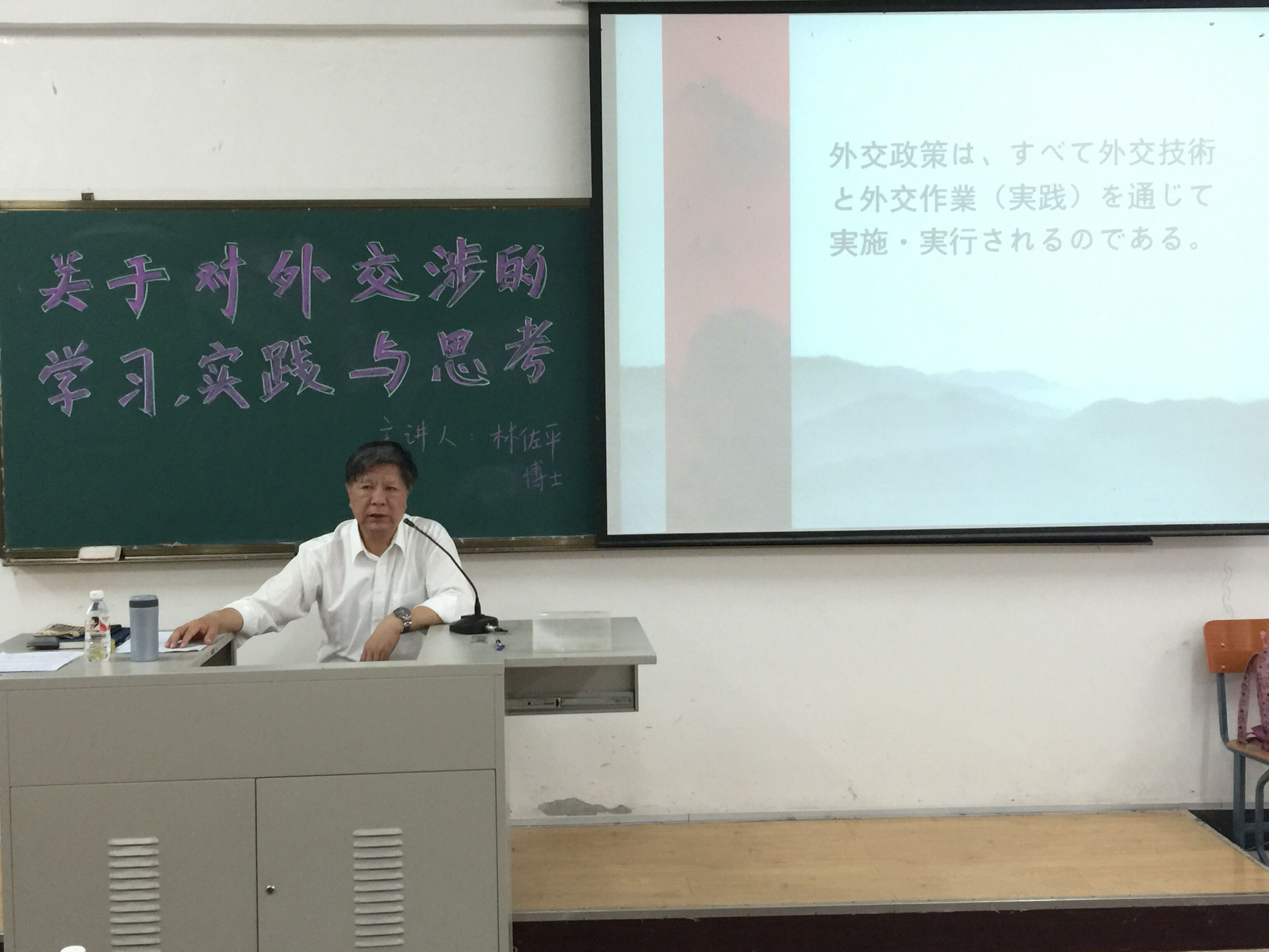 讲座中,林佐平博士以其多年外交官的经历,对交涉的普遍性和特殊性进行了深入浅出、旁征博引的讲演,以对外交涉的小故事来告诉同学们外语学习的重要性。讲座在同学们热烈的掌声中圆满结束。