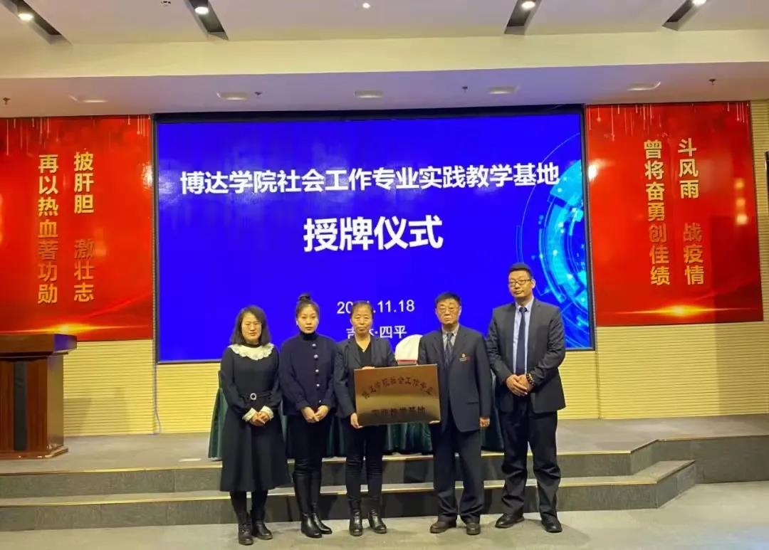 吉林师范大学博达万博体育官网管理万博体育官网院长赵亚芬,社会工作专业教师高萌,管理万博体育官网潘丽老师、吉林省华宇集团副总经理王伟、社区事业部总经理王石共同出席本次签约授牌仪式。