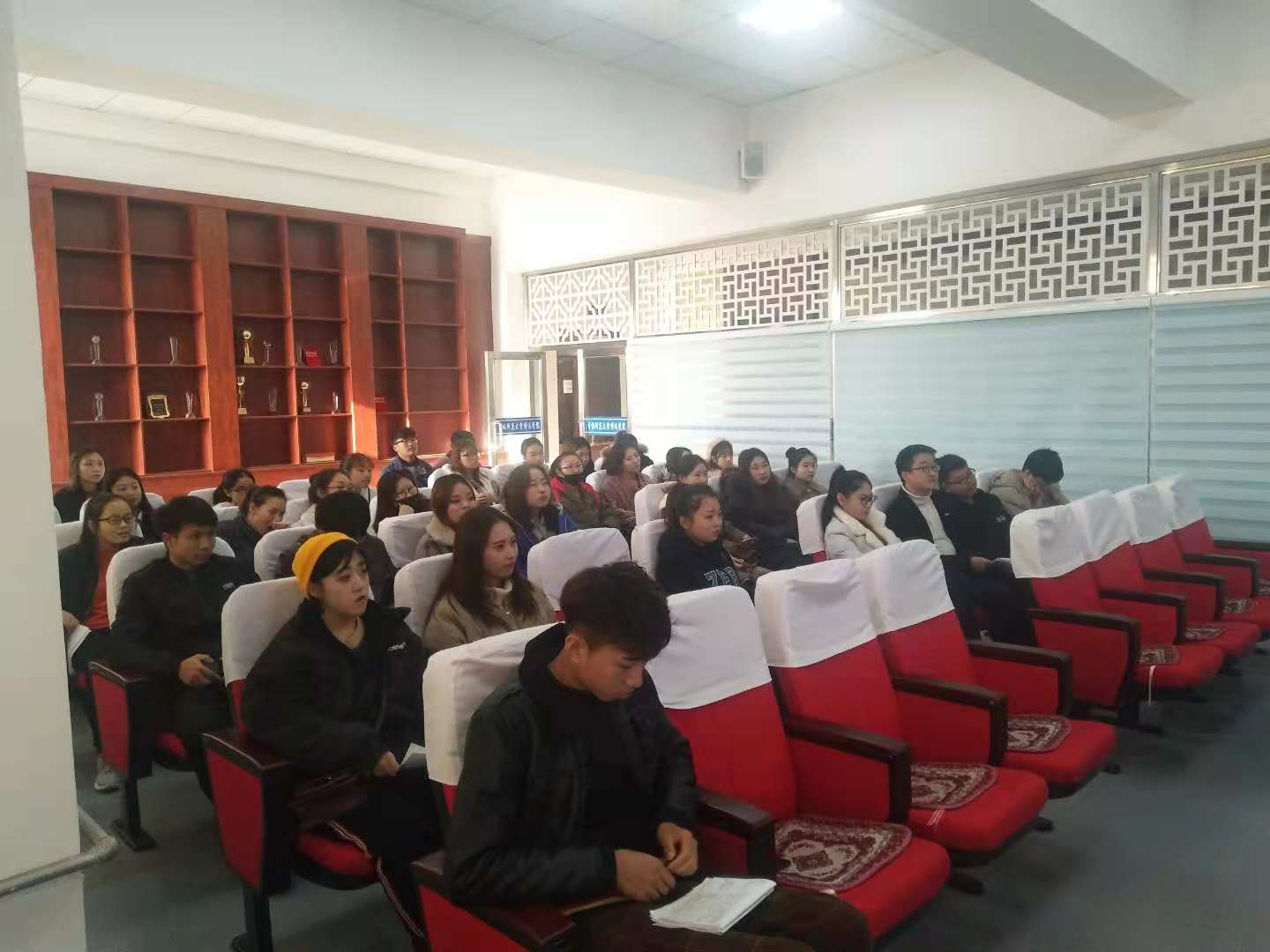 实训总结会议开始前十分钟,市场营销学生已全部到场,安静的查看手中的总结稿件,等待会议开始。本次会议是通过每组成员一起上前汇报实训总结的形式展开,一人为主讲,队友可进行补充。