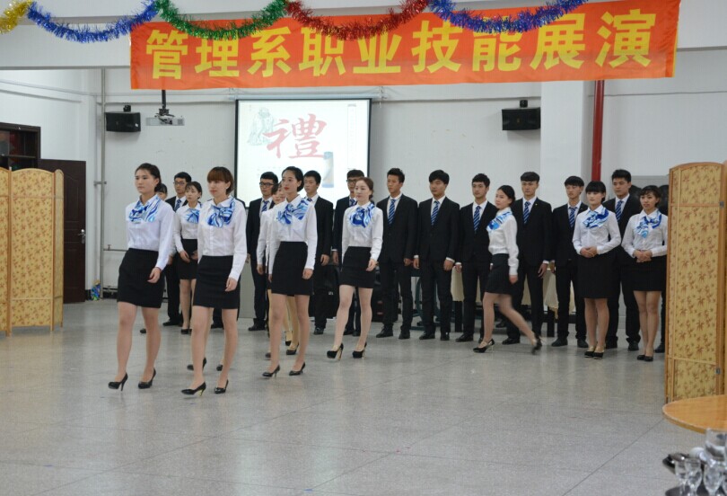 为加强管理系各专业同学的专业技能,展现管理系专业风采,2014年11月26日15:40分,管理系职业技能展演在3411教室隆重举行,教万博体育官网长张力宏教授、教务处实践科科长陈立春老师、各系部教学主任及部分专职教师莅临现场。