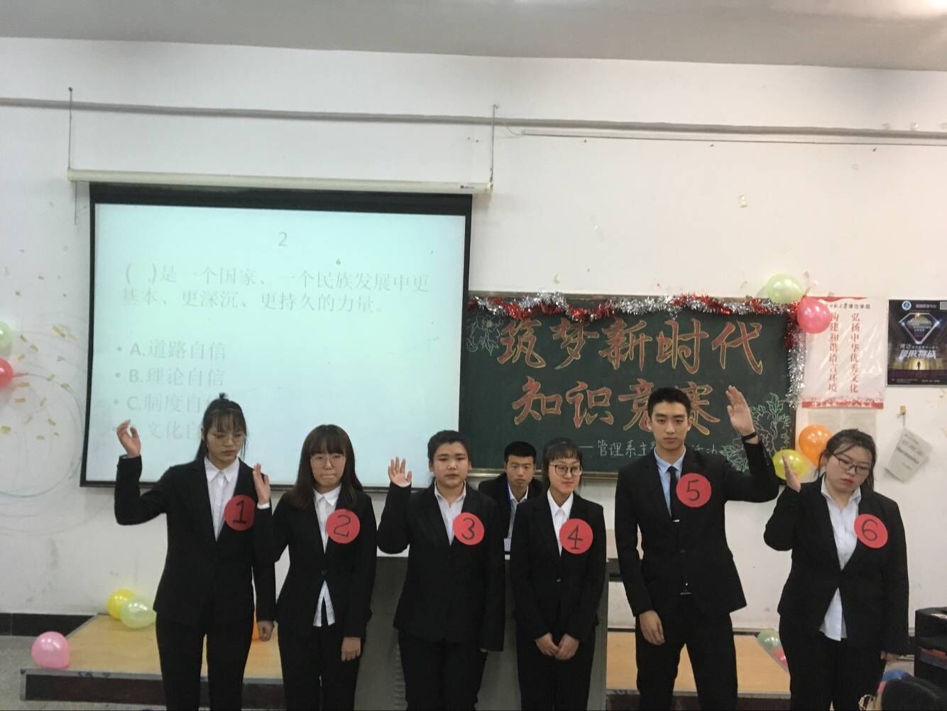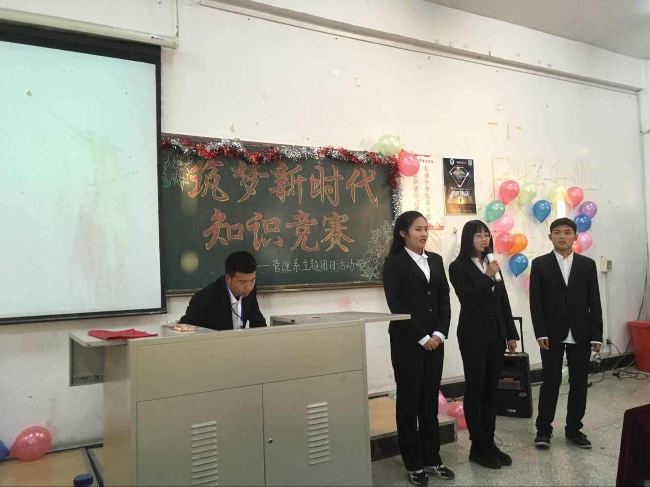 为深入学习宣传贯彻党的十九大精神,教育引导当代大学生关注党和国家的大事。2018年11月16日下午,由吉林师范大学博达万博体育官网管理系分团委组织召开主题党日活动“筑梦新时代知识竞赛”在3521教室如期开展。出席本次会议的嘉宾有辅导员梁婧老师、全承志老师,秘书处李慧老师、高曼曼老师、学生会各部长以及2018级学生。