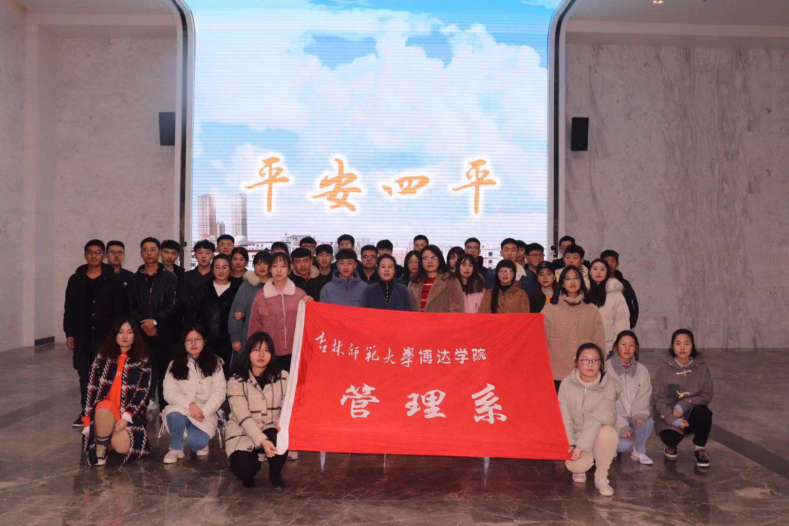 为了进一步增强学生日常安全防范意识和提高自我保护能力,维护校园稳定,2019年2月27日下午,吉林师范大学博达万博体育官网管理系学工办主任耿丽娜老师和辅导员梁婧老师,组织管理系各年级各班同学到平安四平宣传教育馆参观学习。