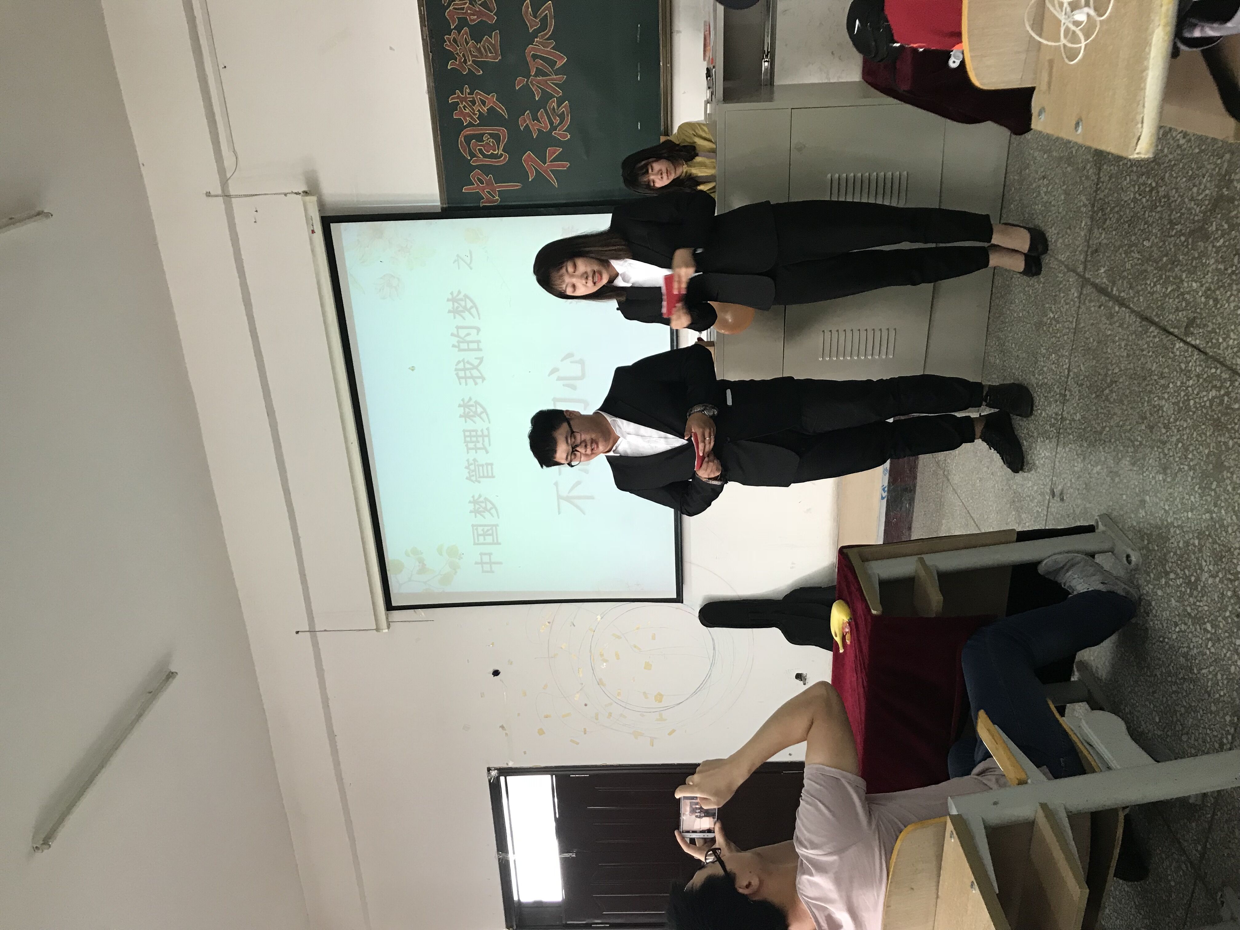 为了深入弘扬十九大精神,开展革命传统教育和爱国主义教育,坚定新世纪新青年的理想信念,2018年5月23日下午4点,管理系分团委在3521教室举办了“中国梦 管理梦 我的梦 之不忘初心演讲大赛”。莅临本次活动的嘉宾有申杰老师,全承志老师,学生会主席团和各部部长。