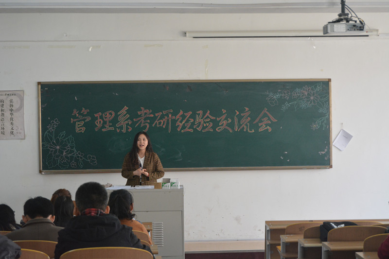为帮助有意愿考取研究生学历的学生规范学习方法,吉林师范大学博达万博体育官网管理系于4月26日下午2点,在3321教室举行了考研经验交流会。本次交流会由本次成功考上研究生的四位优秀学姐讲授考研经验及心得,为考研学子答疑解惑。