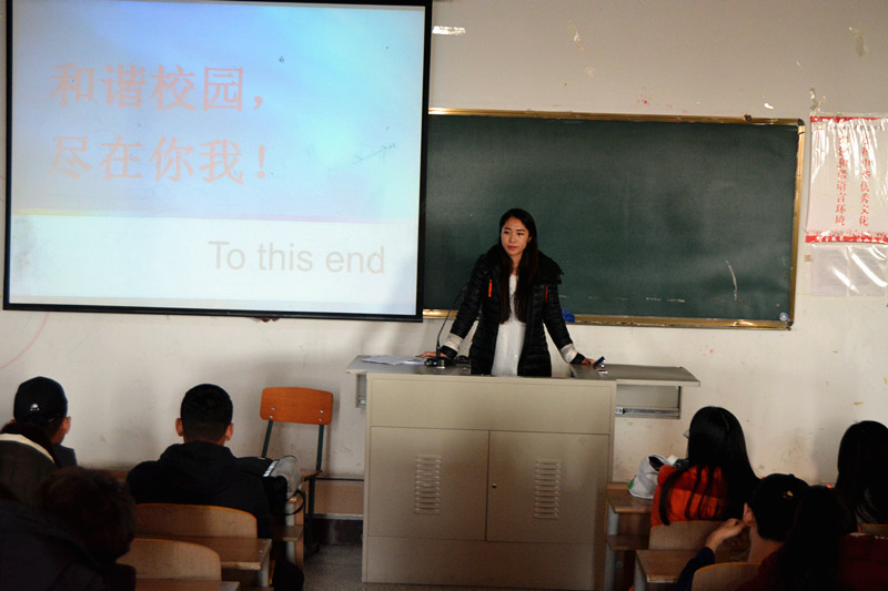 本次安全教育由辅导员黄春月老师主讲。会议中,黄老师以“大学生的校园安全”为主题,从交通安全、宿舍的防火防盗、以及公共场所发生火灾等方面说明了大学生需要接受安全教育的重要性,并且对大学生在遭遇火灾等安全隐患时如何面对、如何处理以及在遭遇交通事故时如何自救做了详细指导。黄老师以PPT形式结合自己的亲身经历提醒大学生应注意自身的安全,提高自我保护意识,并学会在危机中细心冷静的处理问题。