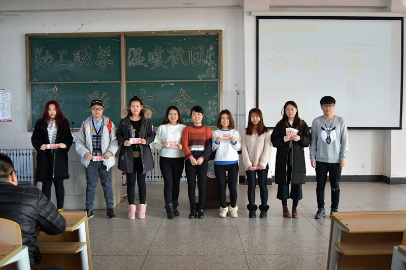 吉林师范大学博达万博体育官网管理系于2016年12月8日组织部分学生干部义卖牛奶,义卖时间为三天,活动目的有两个:一是为了给家庭经济条件困难的同学提供勤工助学岗位;二是为乡村里的留守儿童送去关怀。 在2016年12月13日上午9:40,为表彰同学们在活动中的优秀表现,耿丽娜老师特在3601教室召开“勤工助学,温暖校园表彰大会”。