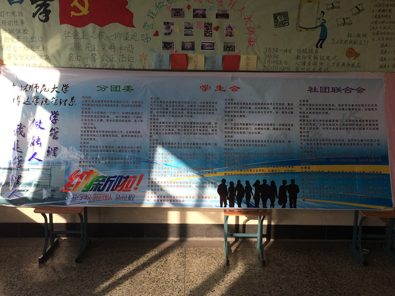 为给学生会注入新鲜的血液,增添新的活力,也给学生们提供一个展示自我的平台,2016年3月30日下午一点半,筹备已久的管理系学生会纳新大会于3520教室正式开始。参会人员主要有主席团各位成员,各部门部长和大一新生。