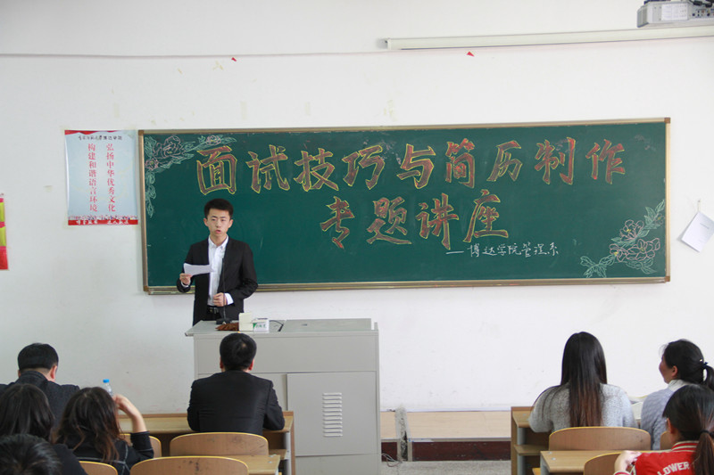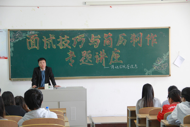 为提高毕业生面试成功率,解答疑虑,2016年4月20日下午3:30分,博达万博体育官网管理系于3420教室举办“技巧与简历制作专题讲座”,管理系辅导员老师以及大三学生参加了此次讲座。