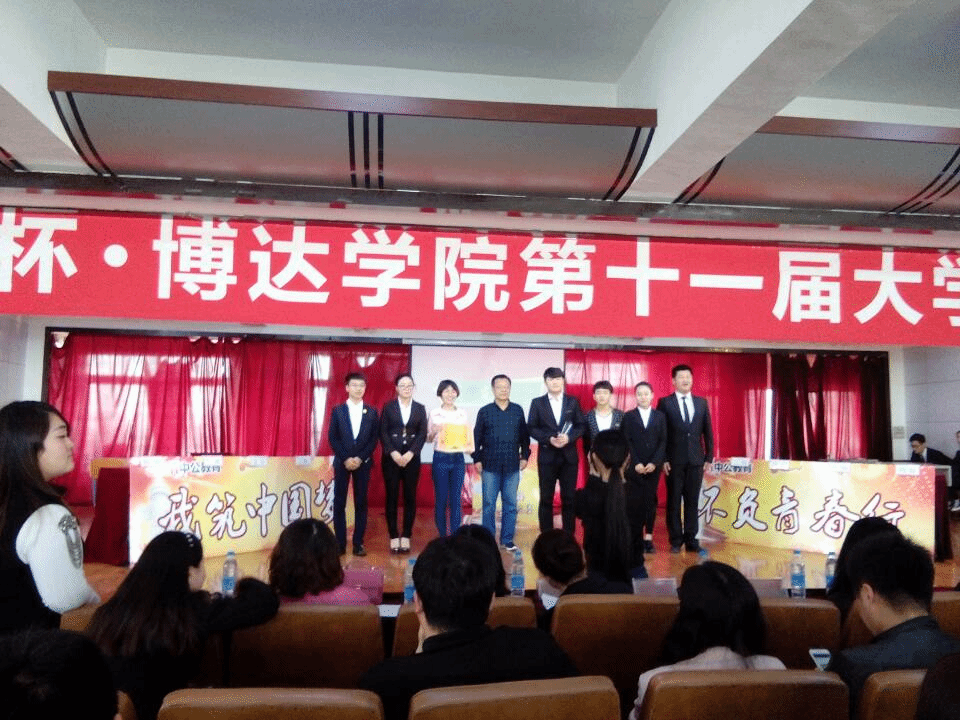 2016年4月27日中公杯·博达万博体育官网第十一届大学生辩论赛在第二教学楼六楼报告厅如期举行。组宣办主任彭殿春、科研处处长侯海荣、教务处教务科科长刘金荣、基础部生忠军老师以及各室、处的老师莅临本场比赛担任评委。