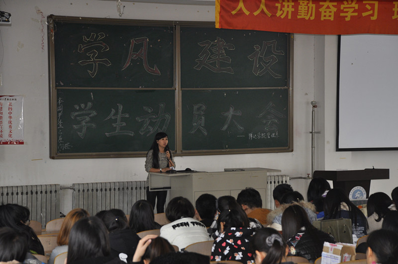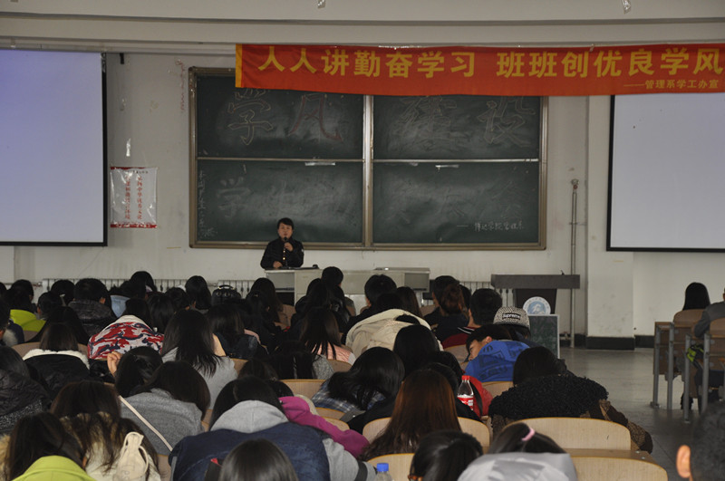 为进一步促进我院学风建设工作,创建安全和谐的校园环境,2015年10月28日中午12:40分,博达万博体育官网管理系于3601举行学风建设学生动员大会,辅导员谷博、耿丽娜老师在动员大会上做了重要讲话。