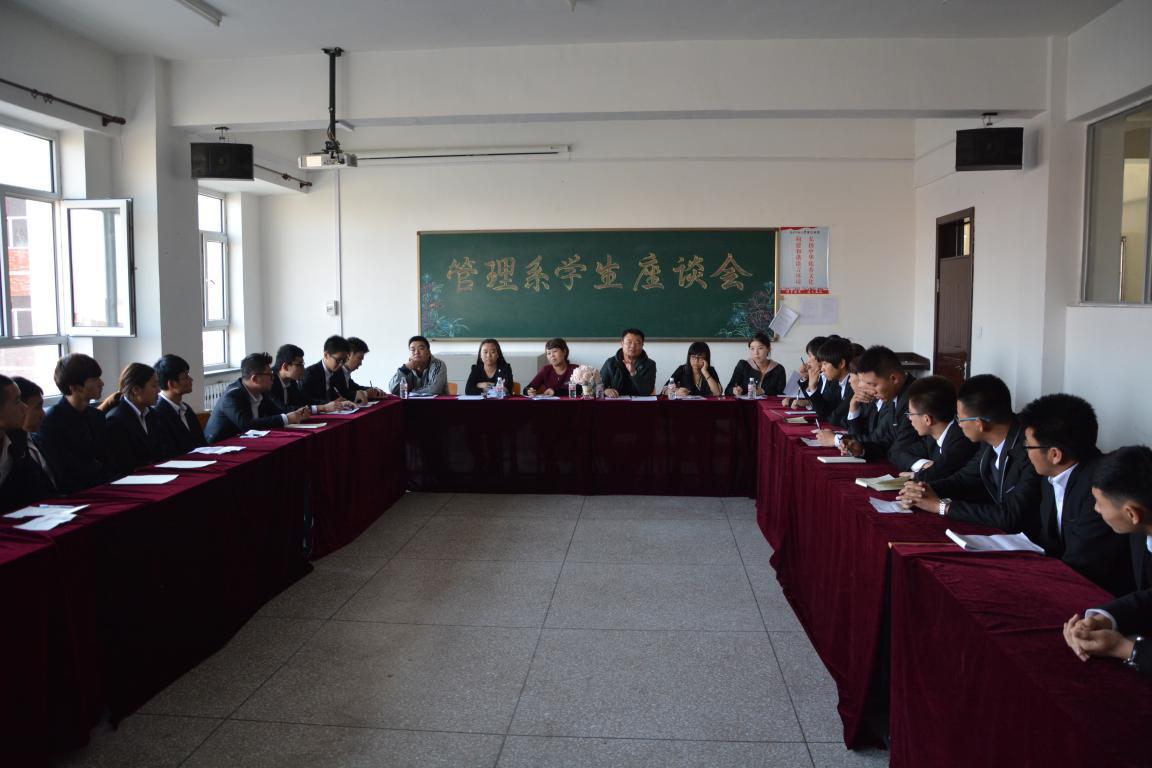 为积极了解学生学习生活情况,2014年11月5日,吉林师范大学博达万博体育官网管理系在3504教室举行期中学生座谈会,各班代表、辅导员老师以及学生处处长莫立华老师出席了本次座谈会。