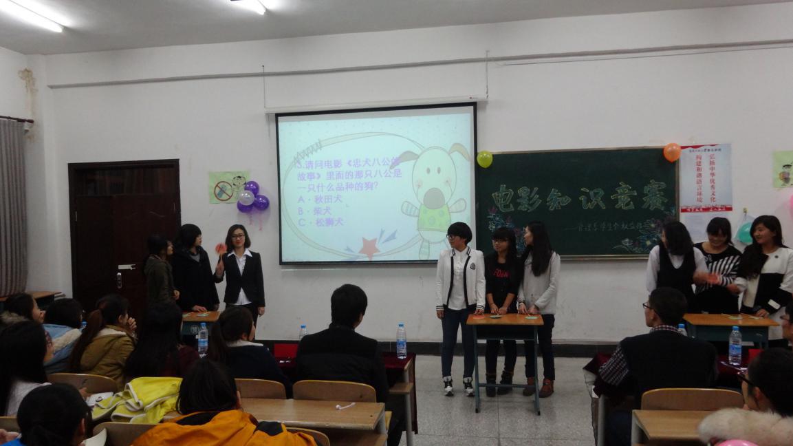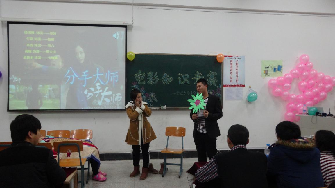 在跌宕起伏的电影情节中领会百味人生,丰富知识陶冶情操。管理系电影知识竞赛于2014年11月16日在3520教室如期举办。