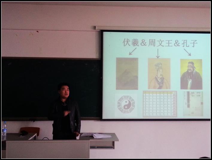 为了解开《易经》的神秘面纱,汤老师把读书心得的分享分为三个部分:“易经是什么”、“卦是怎么形成的”、“正确理解和应用占卜”。他认为,《易经》是中华文化的总源头,是中国哲学的根本,作为当代大学生,很有必要阅读。近一个半小时的分享,汤老师把生僻难懂的文字用“接地气”的语言生动地呈现出来,学生们不仅对经典有了科学的认识,并对阅读经典产生了浓厚的兴趣。