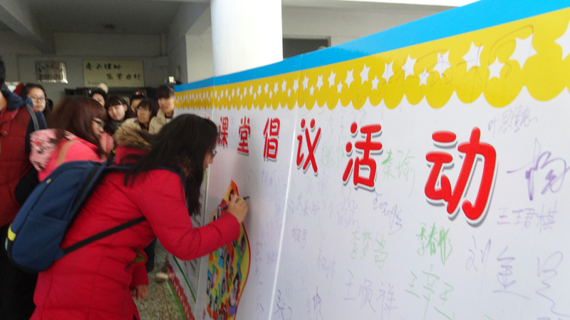 为进一步推进“文明课堂”建设,提升同学们的听课效率。2014年12月9日,吉林师范大学博达万博体育官网管理系在第一教学楼内发起“无手机课堂”签名活动,活动倡导学生上课自觉关闭手机或不带手机,把宁静还给课堂,提高听课效率,维持良好的课堂教学秩序,营造浓郁的学习氛围。