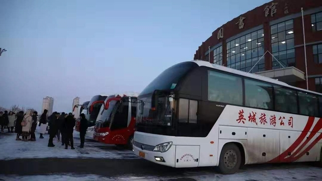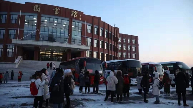 12月21日上午7点05分,在学校图书馆门前,考生们有序走上开往对应考点的客车,他们的脸上几许期待、几许紧张,大家相互鼓励,相互加油。六辆载有上百名考研学子的大巴车驶出校园载着考研学子奔向各考点逐梦。