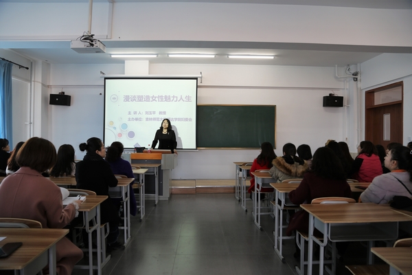 3月6日下午,“三八”国际劳动妇女节来临之际,学校在新校区综合楼 1201教室举办《漫谈塑造女性魅力人生》的专题培训讲座,为广大女教职工送上美丽健康新时尚。
