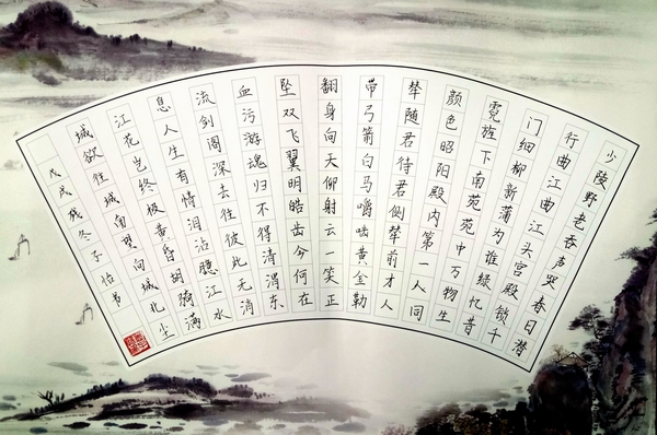 教师职业技能训练中心选聘范文彬、仵宏慧、曲立超、全承志等4位书法教师,对汉语言文学、小学教育、学前教育等8个教师教育专业的2018级钢笔字、粉笔字小先生以及2017级粉笔字小先生共计268人进行了规范汉字书写培训。通过对硬笔楷书的基本笔画、偏旁、结构原则、硬笔书法的章法与作品创作等方面的培训,学生的书写技能有了很大提高。此次成果展主要展示了学生部分优秀的钢笔字、粉笔字作品。
