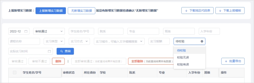 2.2023年3月实习数据请在4月初上报,并逐月上报上月实习结束数据,没有新增实习数据也请点击确认“无新增实习数据”。