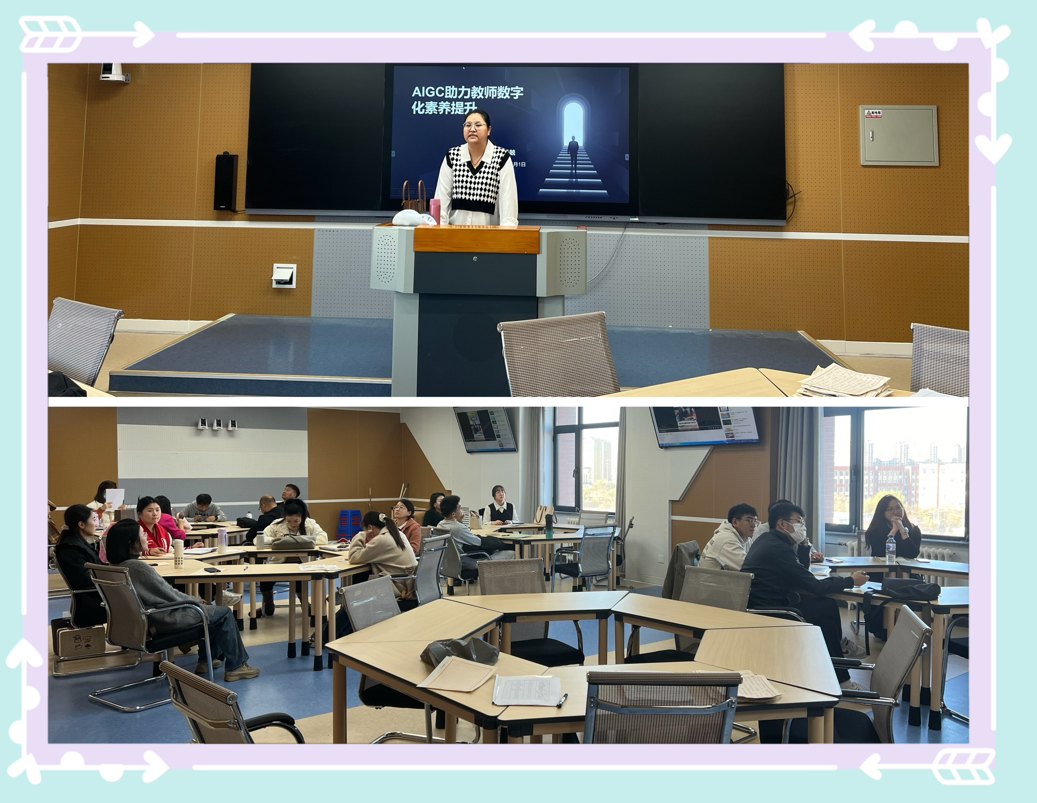 首先,马院长展示了教育部印发的《教师数字素养》行业标准,对其重要性、主要内容、实施策略进行解读。随后,向新入职教师介绍AIGC是一种新的人工智能技术,即人工智能生成内容,同时可以生成个性化教育内容,帮助学生更好地理解和掌握知识,为教育领域提供了新的教学方式和工具。AIGC的应用十分广泛,可以生成高质量的新闻文章、博客帖子和小说等文本内容,为内容创作者提供巨大的帮助,能够生成引人注目的广告标语、宣传材料和社交媒体内容,帮助企业吸引更多的客户,可以帮助医疗专业人士分析患者数据并生成医疗报告,提高医疗诊断的准确性。最后,马院长认为AIGC在课堂教学中有优势同时也充满着挑战,因此教师在教学中应注意AIGC可能带来的潜在问题。