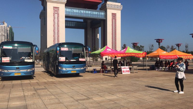 新生及家长在工作人员的引导和带领下,统一上车,秩序井然。每辆接站车均有一名志愿者“导游”,沿途为新生和家长介绍四平的风土人情,介绍学校的情况,为新生答疑解惑。
