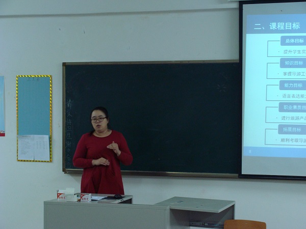 陆老师和刘老师先后从课程简介、改革的提出、改革思路与方法、改革成效与成果展示、存在的问题与反思等方面对教改课程的进展情况做了汇报。陆老师提出了通过理论与实践一体化的途径和“任务驱动”教学方法实现《计算机基础》课程改革,通过改革,实验班学生的学习兴趣和主动性增强,教学效果有了明显提高。刘老师通过“任务驱动”教学方法,让学生在特定情境中模拟演练,提高导游业务实践能力。在场教师全神贯注听取汇报内容,从两位老师的成果展示中看到了新的教学方法和教学思路,认识到了教学改革的必要性和有效性。
