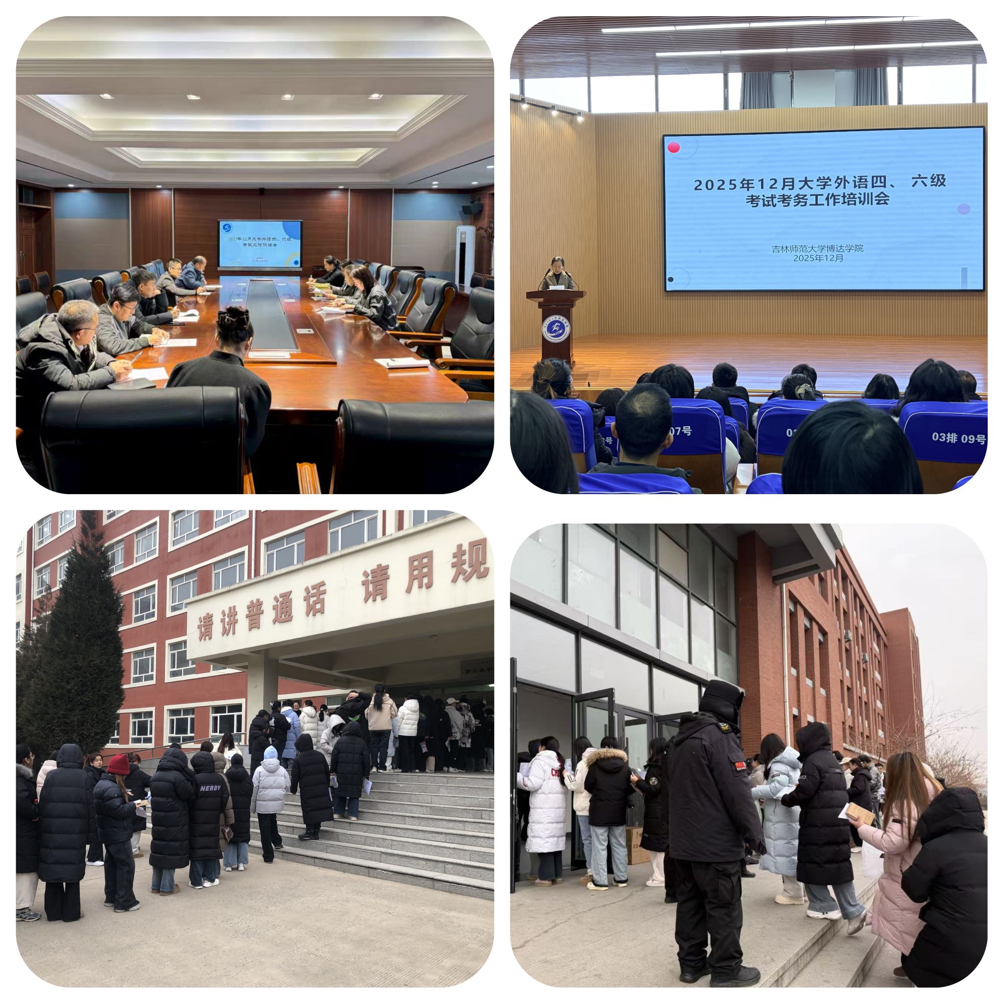 2025年12月13日,全国大学英语四、六级考试顺利结束。我校近4千名考生在133个考场应考,学校严格落实省教育考试院部署,以统筹协作、精细管理、人文服务构建全链条保障,确保考试安全公平、平稳有序。
