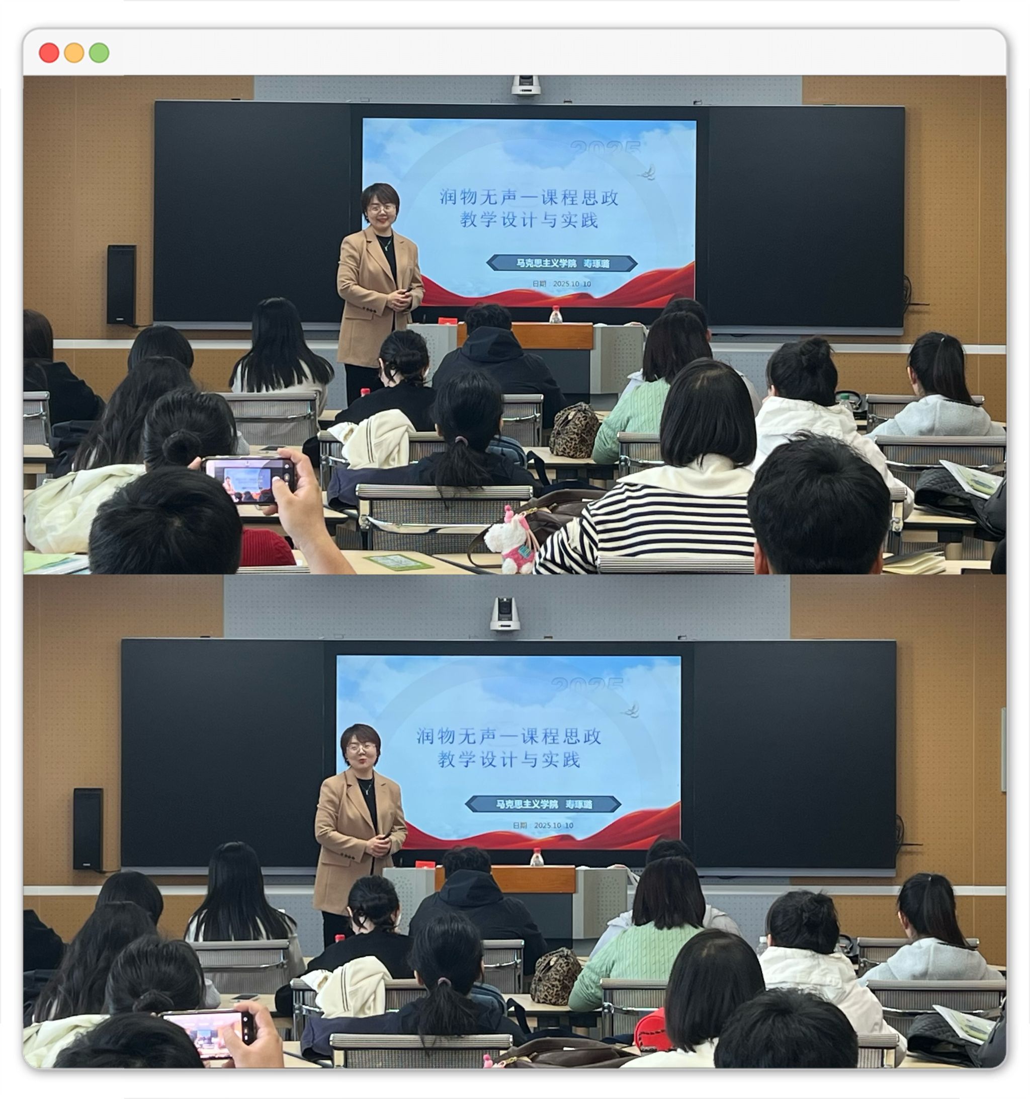 为助力新入职教师更好开展教学工作,推进课程思政建设,10月10日下午教务处邀请我校马克思主义万博体育官网专职教师寿琢璐在综1413智慧教室为新入职教师作“润物无声——课程思政教学设计与实践”专题培训。
