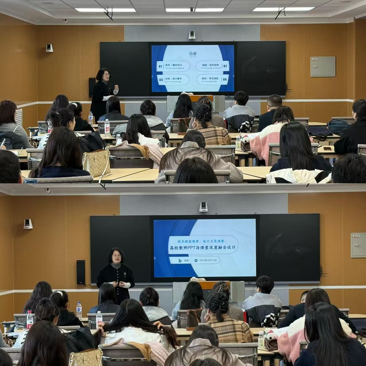 为帮助新入职教师快速掌握现代化教学工具,提升PPT 设计与课堂教学融合能力,10月31日下午教务处邀请我校管理万博体育官网副院长潘丽在综1413智慧教室为新入职教师作“技术赋能教学,设计点亮课堂——高校教师PPT与课堂深度融合设计”专题培训。