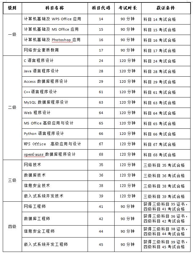 (二)从9月考试起,新增二级openGauss数据库程序设计(科目代码68)。