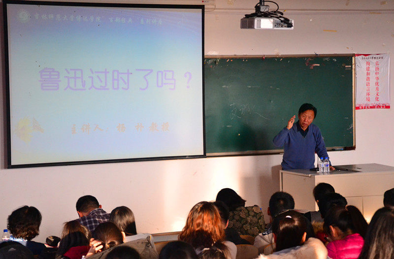 11月25日下午13:30,“百部经典”系列讲座第三场开讲,我院教授委员会委员、语文教育研究所主任,吉林师范大学文万博体育官网硕士生导师、吉林大学博士生导师杨朴教授在3421教室作专题讲座,题为“鲁迅过时了吗?”。我院中文系、教育系师生200余人听取了该讲座。