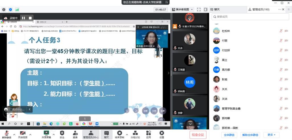 10月19日下午,旅游与地理科学万博体育官网组织全体专职教师参加由长春大学举行的2022年“初心启航”青年教师教学能力提升研习营活动。本次活动通过腾讯会议邀请到吉林大学陈璐副教授以“运用有效教学设计破解课堂教学痛点——BOPPPS实作工作坊”为题进行专题讲座。