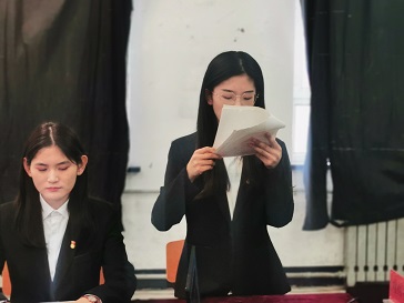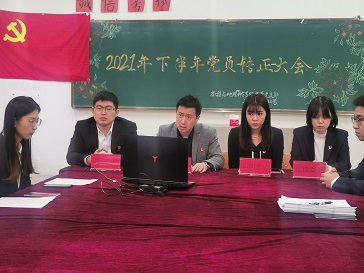 张昕滢、王贺、张宇、李靓、张佳欢、袁煜淞、张幸倩、曹诗可和教师党员邱红九名预备党员宣读《转正申请书》,汇报自己在预备期间的表现,肯定成绩,找出差距,表明决心,并说明有关问题。随后,预备期间的考察联系人分别介绍预备党员在预备期间的表现。