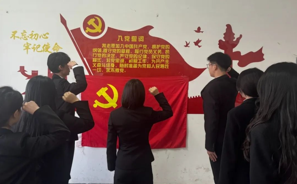 大会最后,六名新晋预备党员在支部正式党员的带领下,举起右手,面向党旗,郑重地宣读入党誓词。一阵阵铿锵有力的声音,表达出他们对党的忠诚和为人民服务的决心。