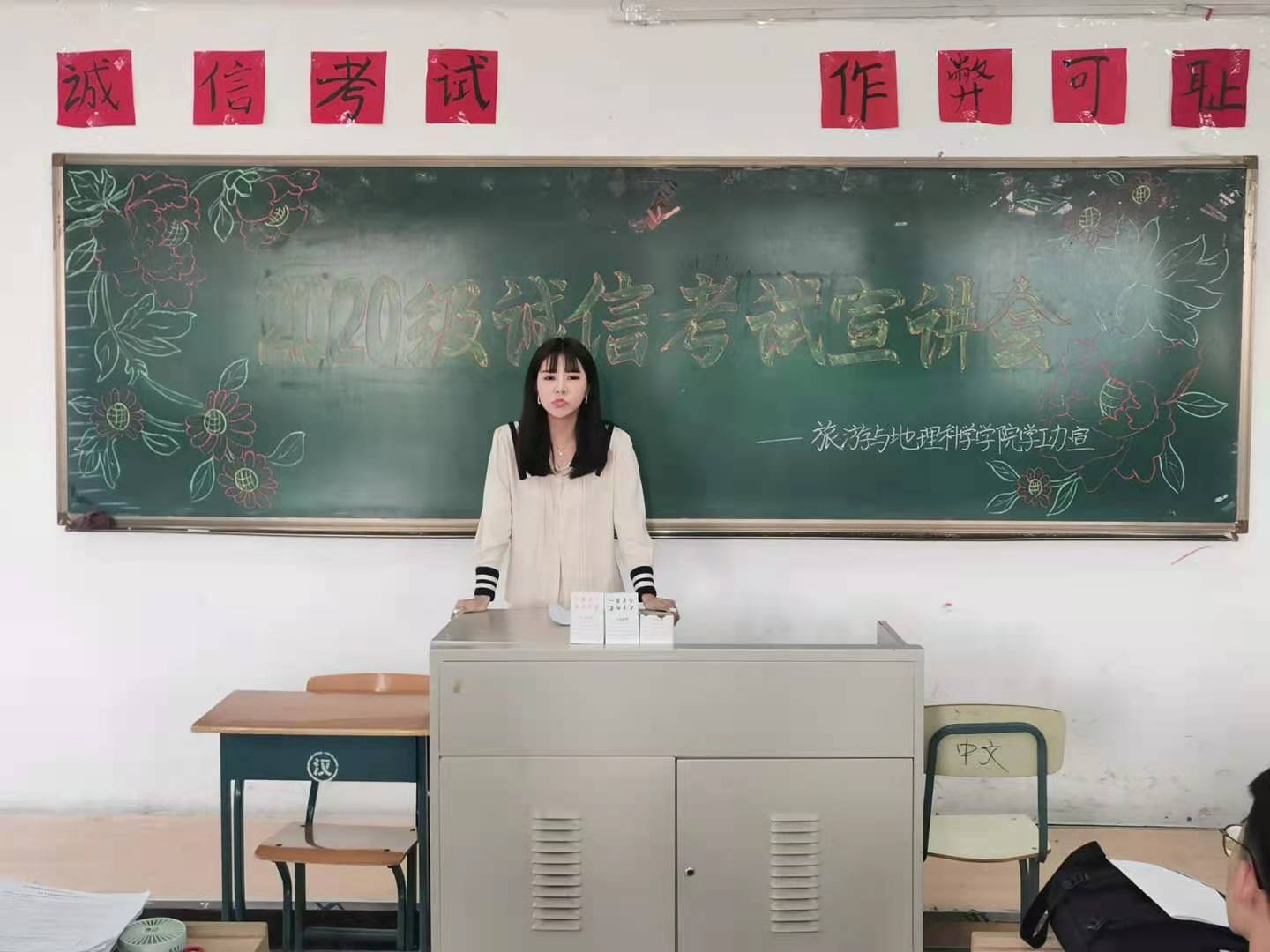 仲夏将至,等待同学们的还有最后的一场战役--期末考试。距离期末考试仅剩不到两个星期,整个学校进入了一个无比紧张的环节,校园的各处都充斥着浓浓的学习氛围。因此,旅游与地理科学万博体育官网于6月17日晚六点在老校区3322教室召开2020级诚信考试宣讲会,旅游与地理科学万博体育官网辅导员何珊珊老师主持召开会议。