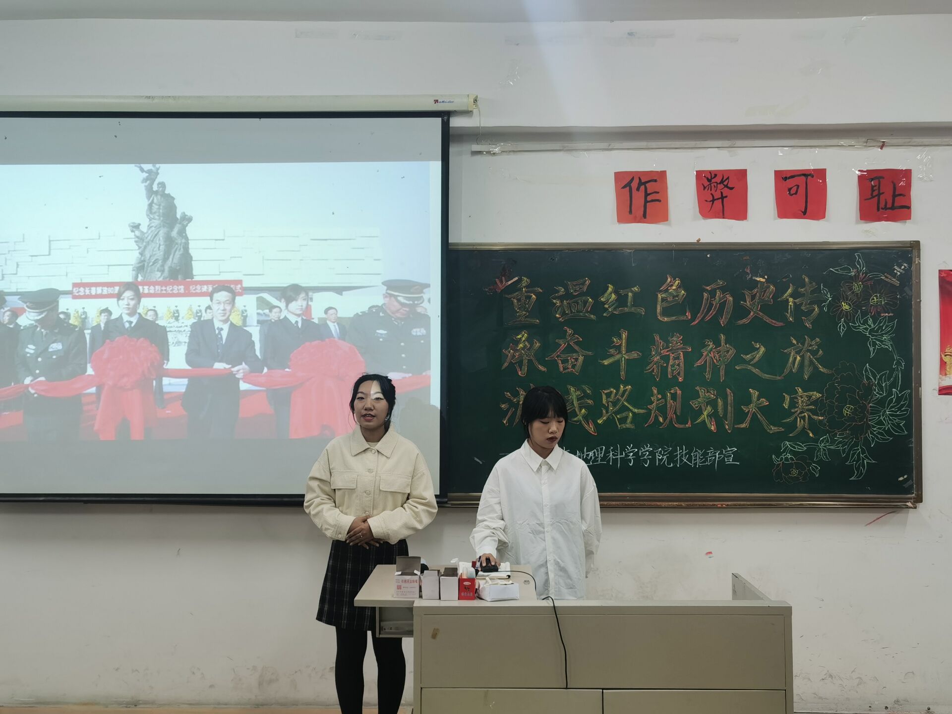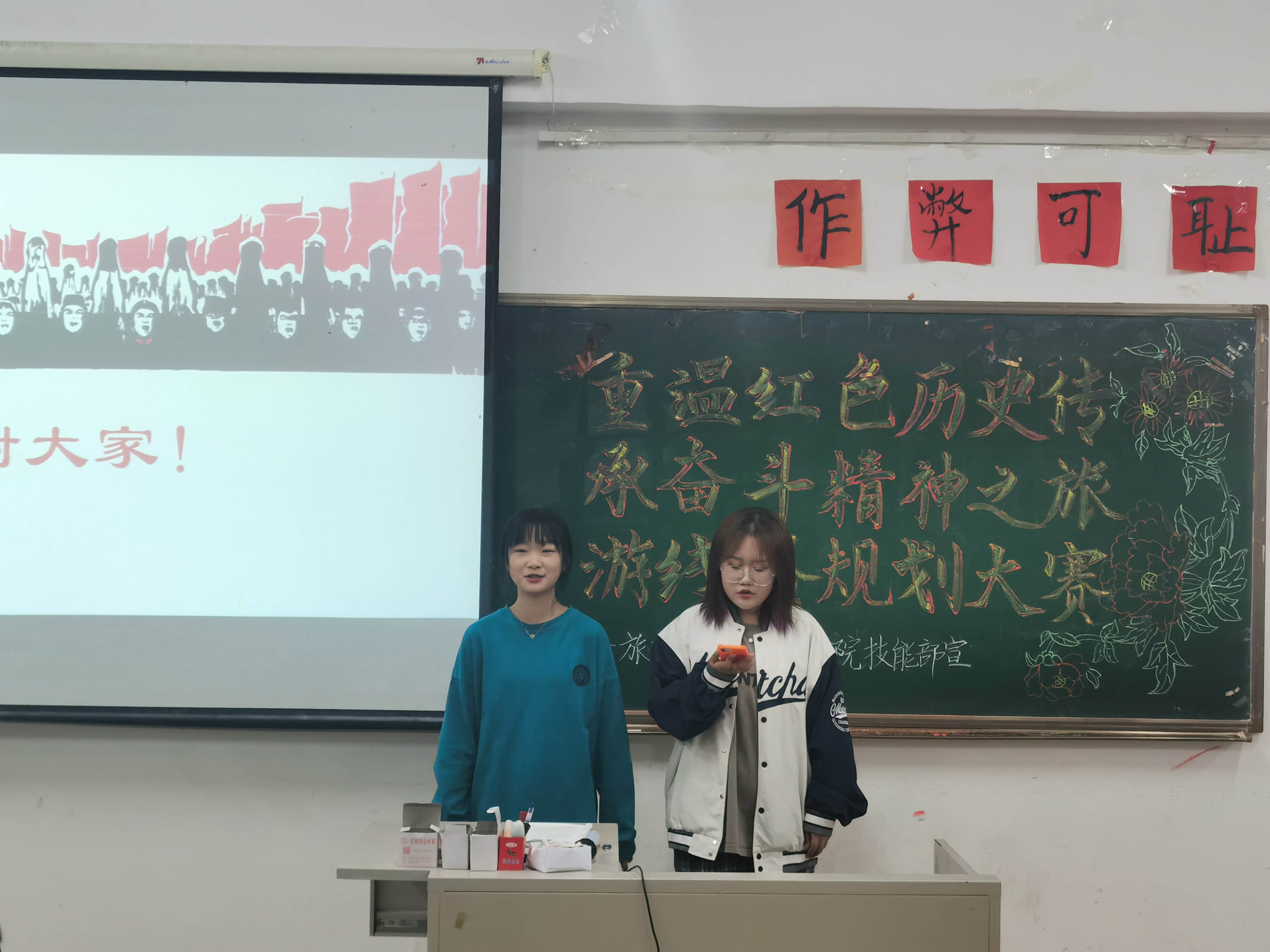 随着红色文化的兴起,红色旅游线路规划也因此发展起来。因此,为让同学们更好的了解旅游规划,增强同学们的爱国意识,传承红色文化,弘扬红色精神。旅游与地理科学万博体育官网社团联合会技能部对21级旅游管理学生在老校区第三教学楼3322教室举办红色旅游线路规划大赛。