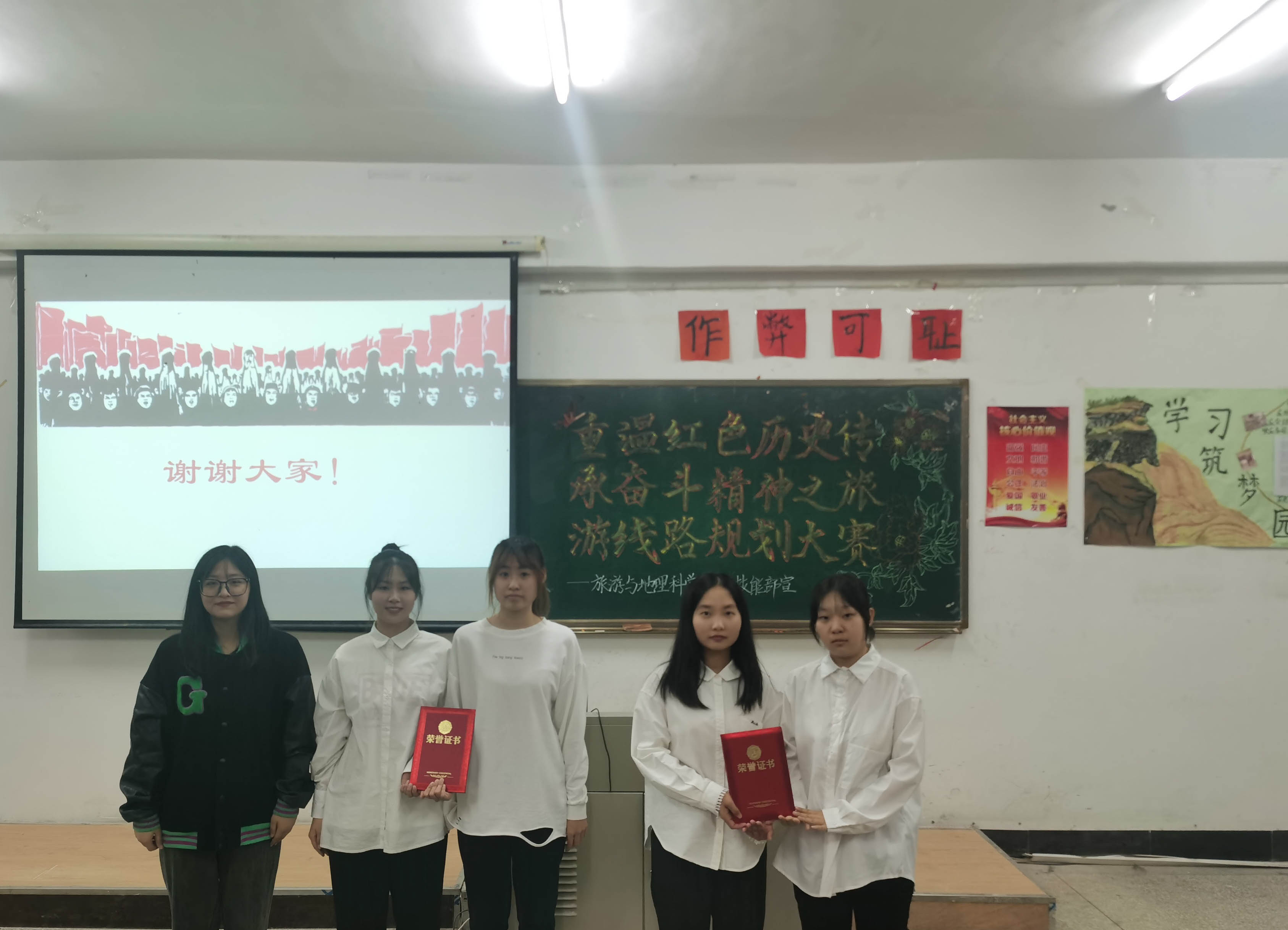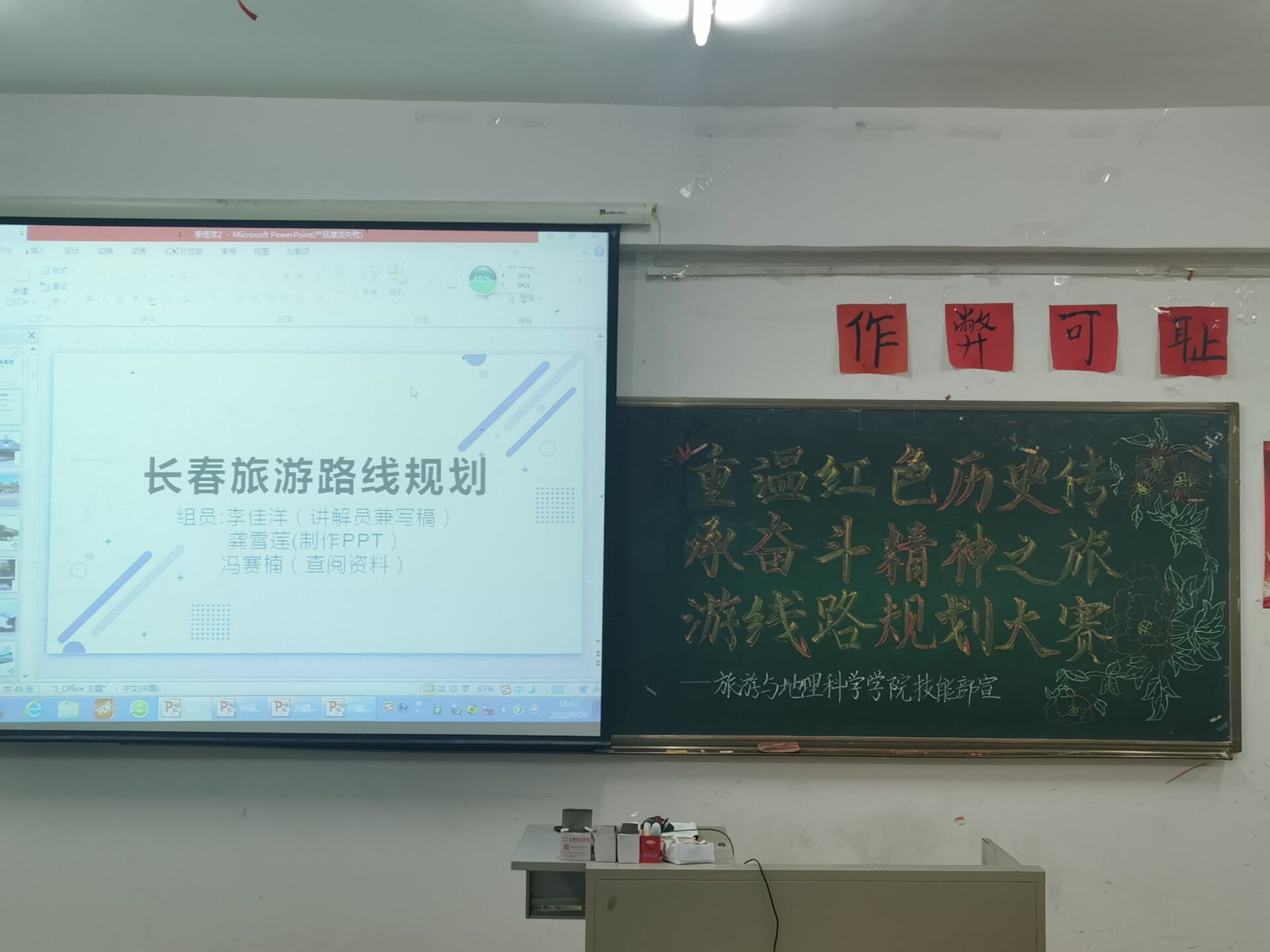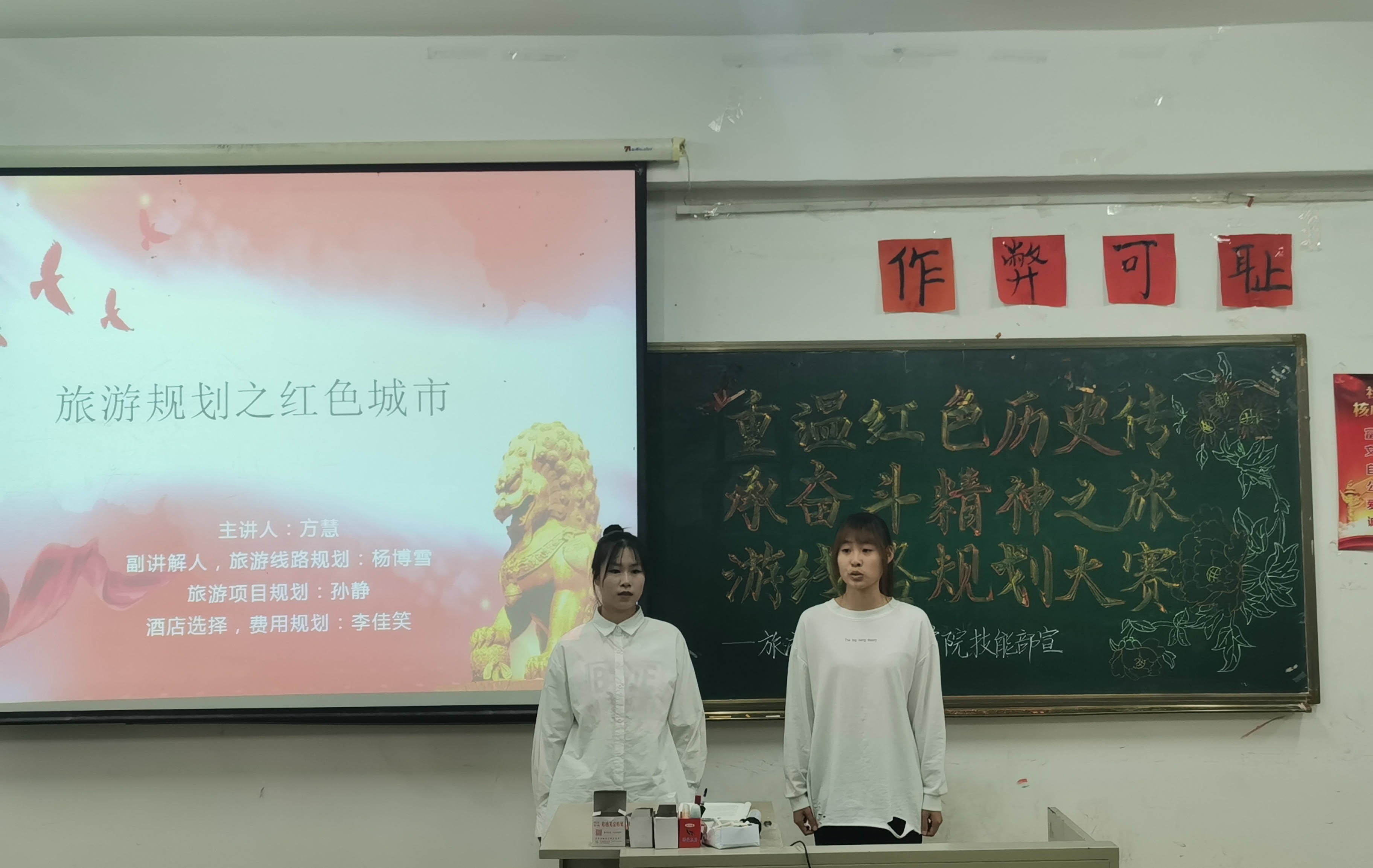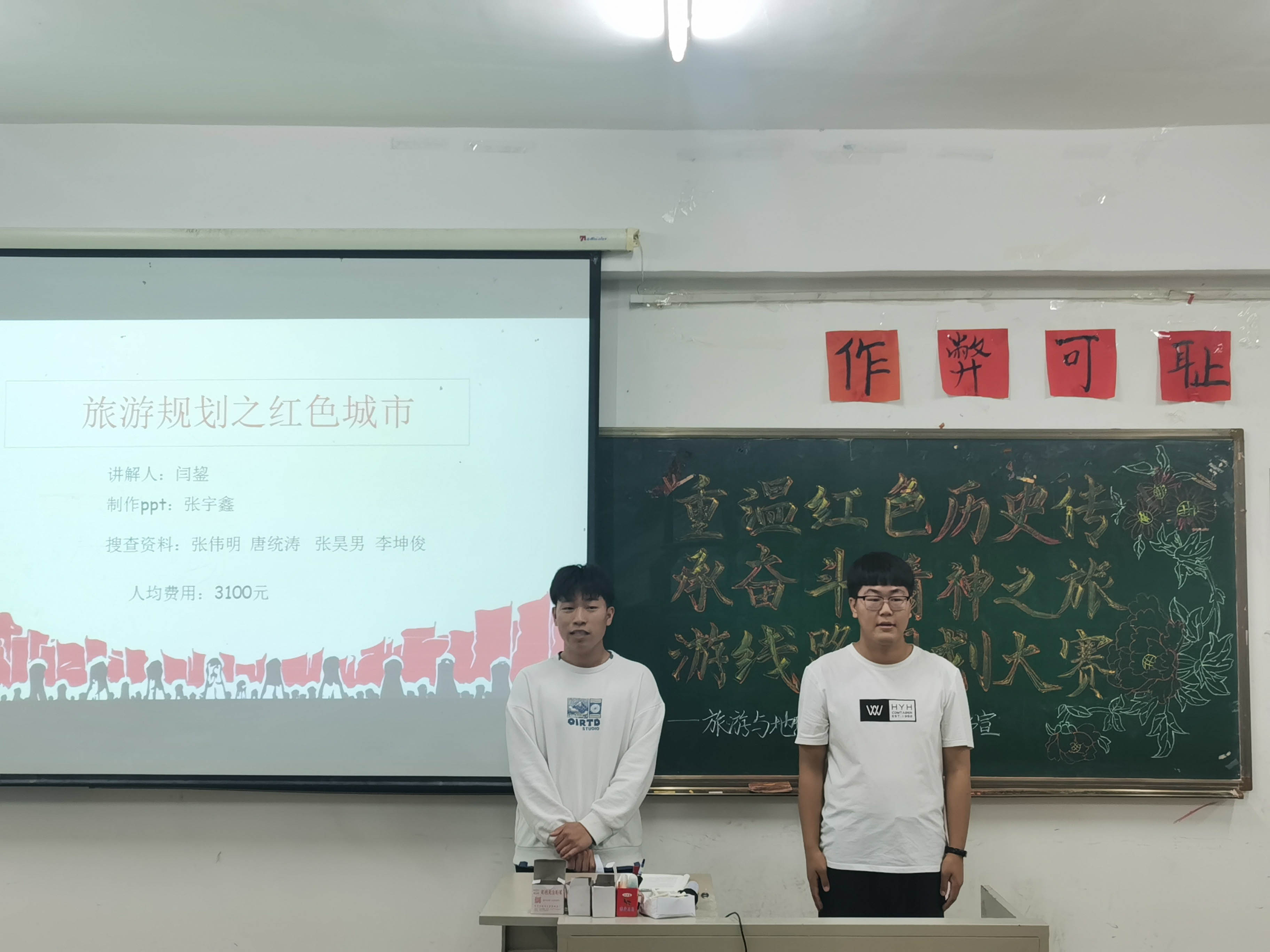 活动是由同学们以团体参赛的形式并自行选择旅游线路讲解PPT。各参赛组的作品都创意新颖,深入挖掘红色旅游文化内涵,充分彰显了红色精神。展示了我旅地学子的青年风采。经过激烈角逐,评出了最后的一等奖一名,二等奖一名,三等奖两名,以此鼓励。