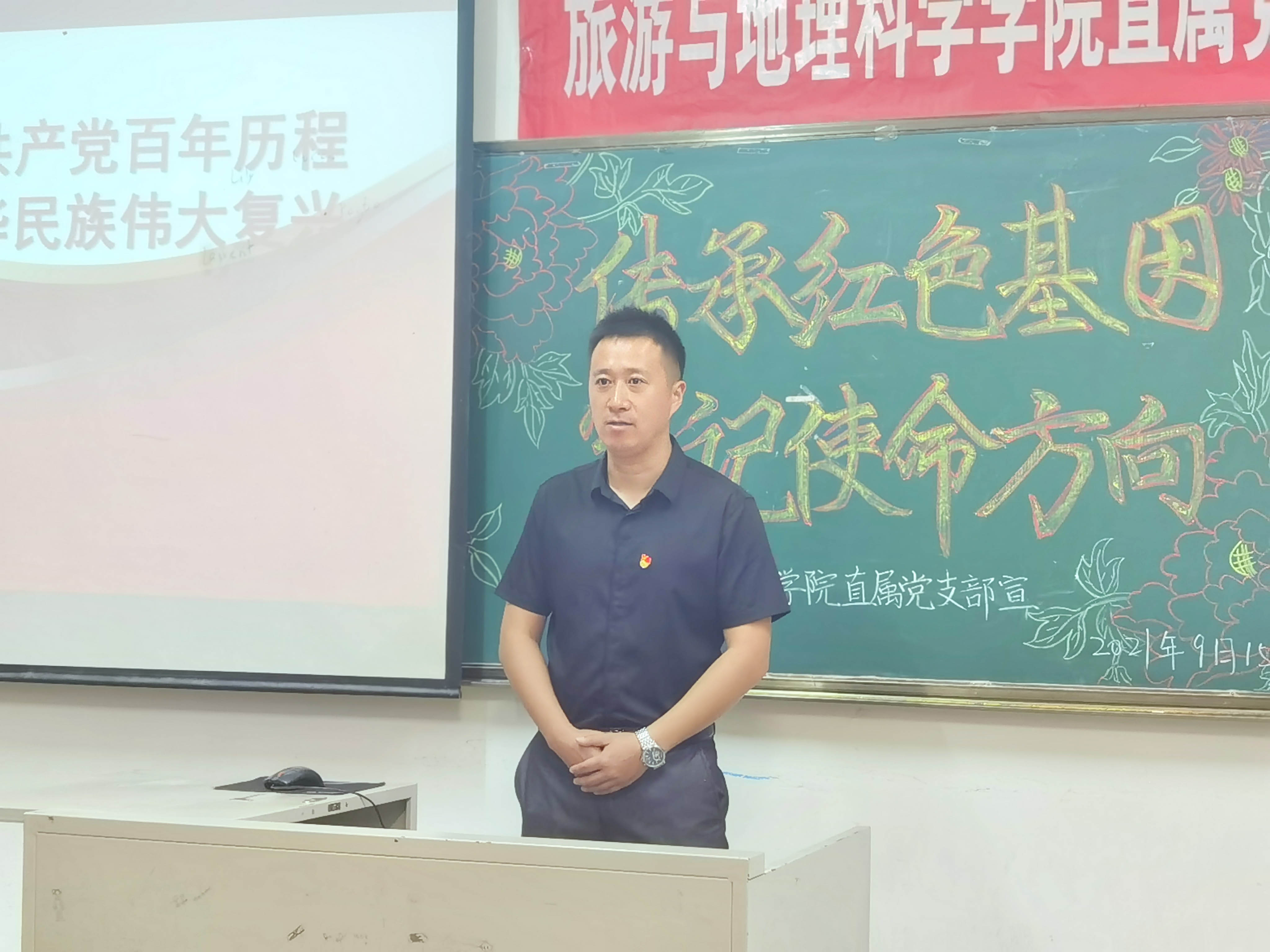 为深入学习习近平总书记在庆祝中国共产党成立100周年大会上的重要讲话精神,2021年9月15日,旅游与地理科学万博体育官网直属党支部和分团委志工部在老校区3308联合举办举办了“传承红色基因,牢记使命方向”主题“四史”教育活动。