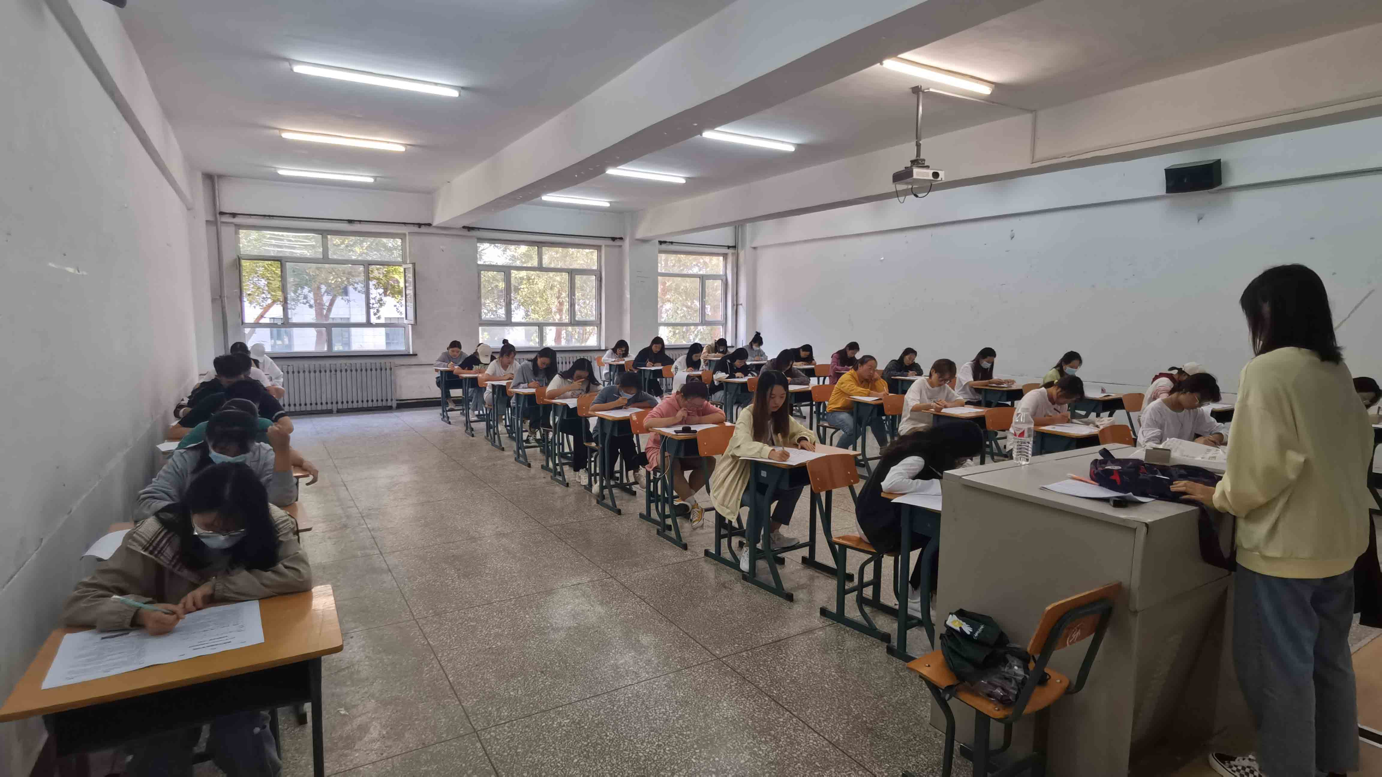 考场上,同学们座位间隔有序,每一位同学都认真思考、仔细答题。希望通过本次模拟考试能够让同学们对学习过的知识点进一步巩固,找出自己复习的漏洞,以便补救;锻炼同学们的考试心理,适应考试节奏,快速进入考试状态;掌握一定的应试技巧,积累考试经验,从容面对正式考试,顺利拿到教师资格证。