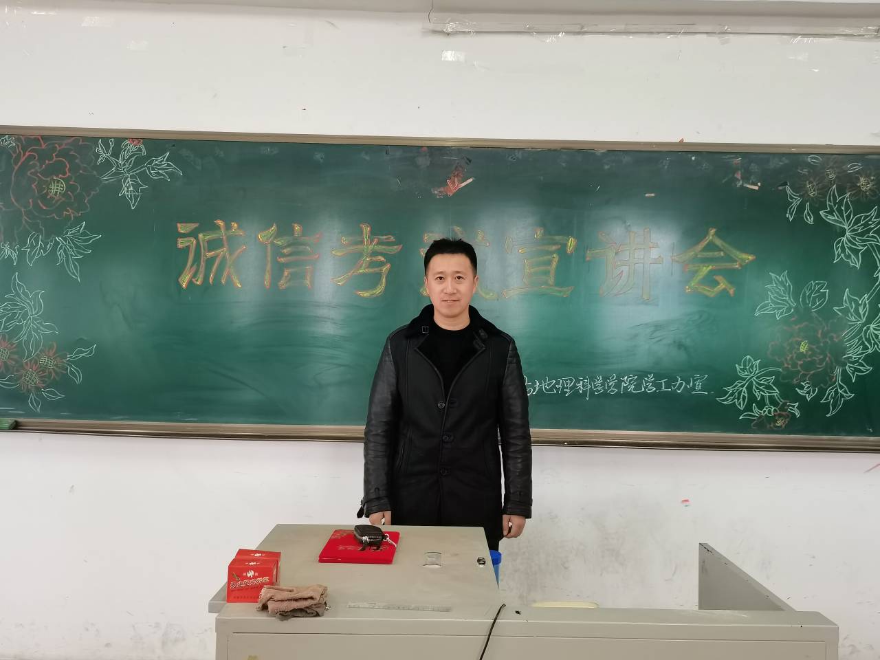 认真听讲,埋头苦读,课后的同学们也都开始了紧张的复习。正是由于期末的倒计时,旅游与地理科学万博体育官网于11月10日在老校区3322教室,由旅游与地理科学万博体育官网学工办主任柳志明老师为旅游与地理科学万博体育官网全体学委召开诚信考试宣讲会。